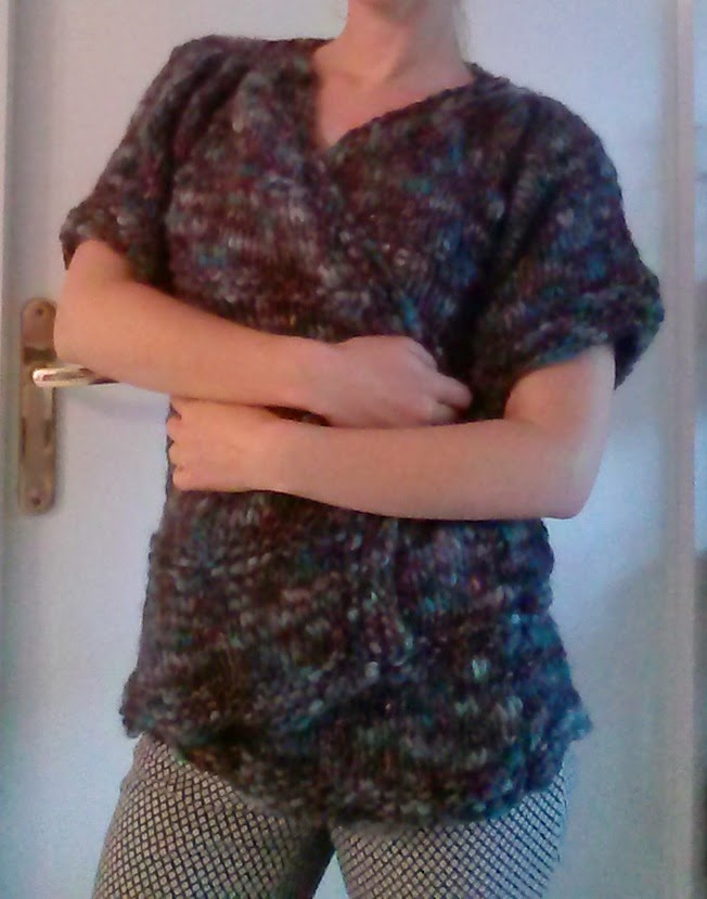 Donc forcément, ce n'est pas symétrique, ce n'est pas tricoté pareil, et en plus, lorsqu'il a fallu raccorder les bout, j'ai fait comme j'ai pu, à savoir que quand je mets le gilet, j'ai l'impression d'avoir des gros boudins sous les bras, pas très agréable lol.
